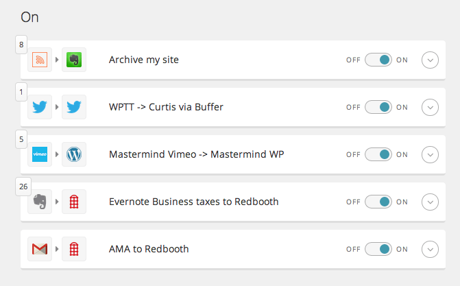 Tie in Zapier and Scanner Pro and I can take a photo of a receipt which automatically uploads to a special Evernote notebook. Then Zapier takes over and pushes the note in to a task in Redbooth so that my book keeper can enter the receipt.