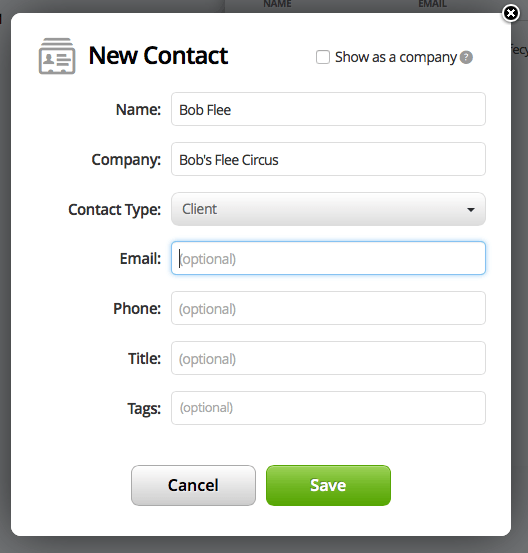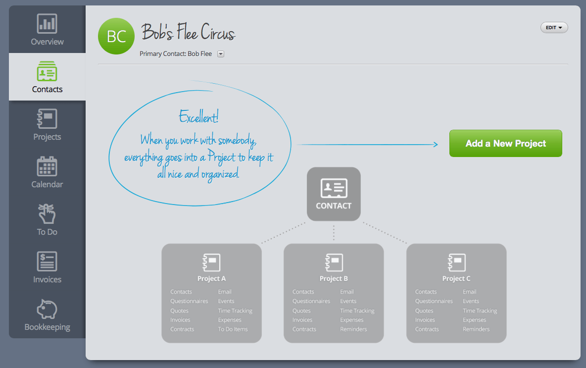 In spite of all the things I love about 17hats, I hate that everything is a project. I dislike that you have to create a full contact for every single person.