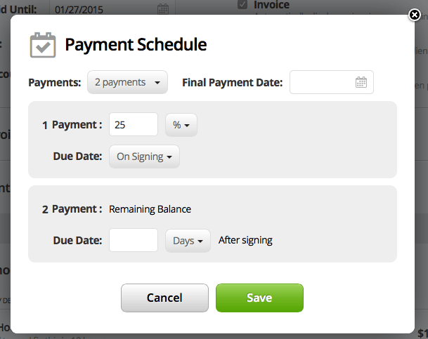 If you choose payment terms you can easily automate up to 4 payment milestones, without having to worry about the invoices being sent again.