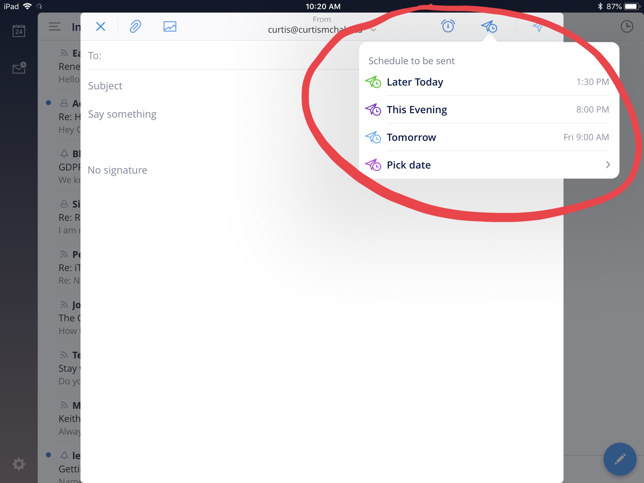 The only tool I use now for email on my desktop is Right Inbox. It had the right mix of features and UI for me inside MailPlane, so I use it. On my iPad Pro1 I use Spark, which has all the features I needed in Right Inbox.