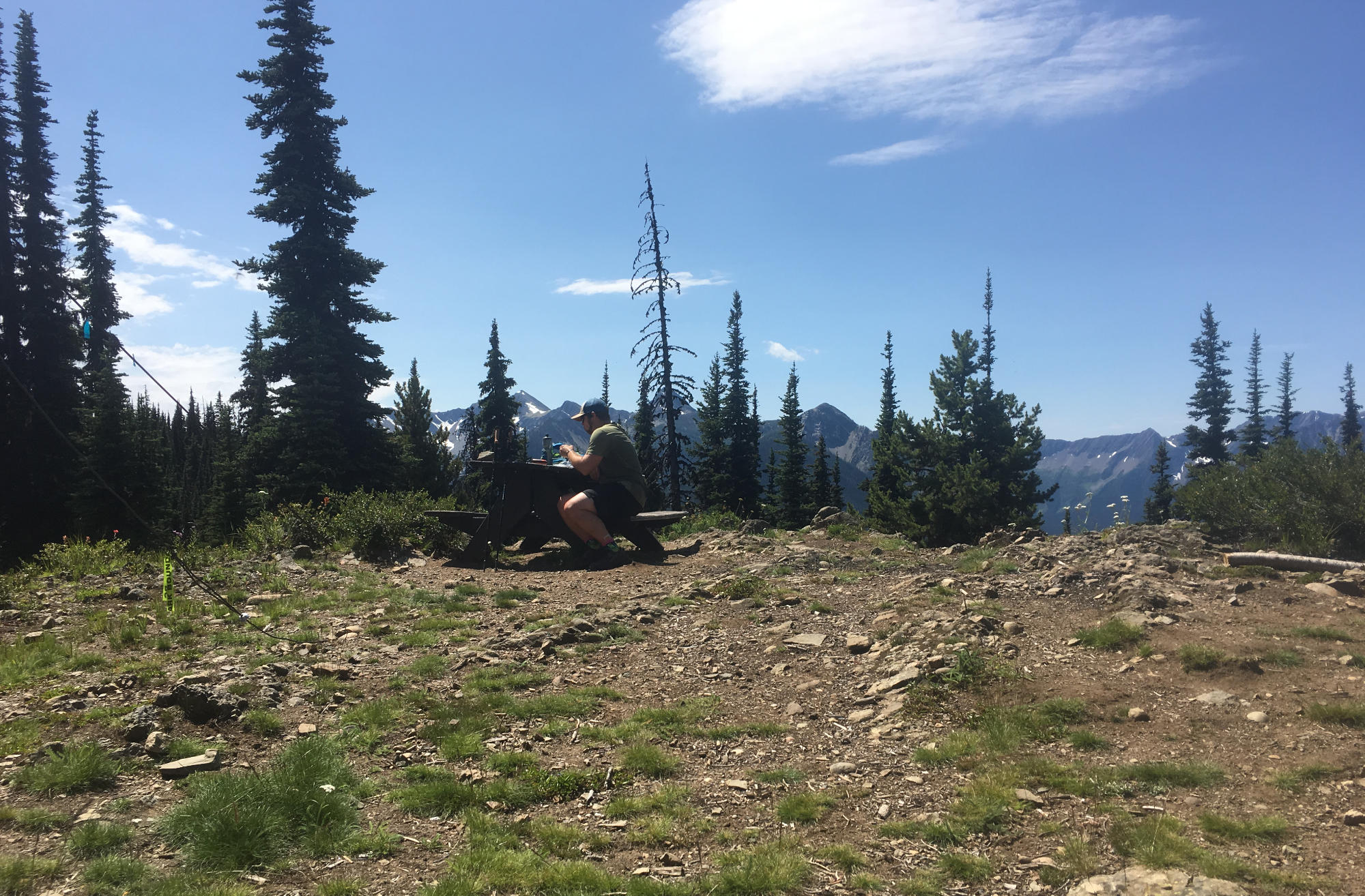 Eating a bit on the summit of Windy Joe, man were the flies bad.[/caption]