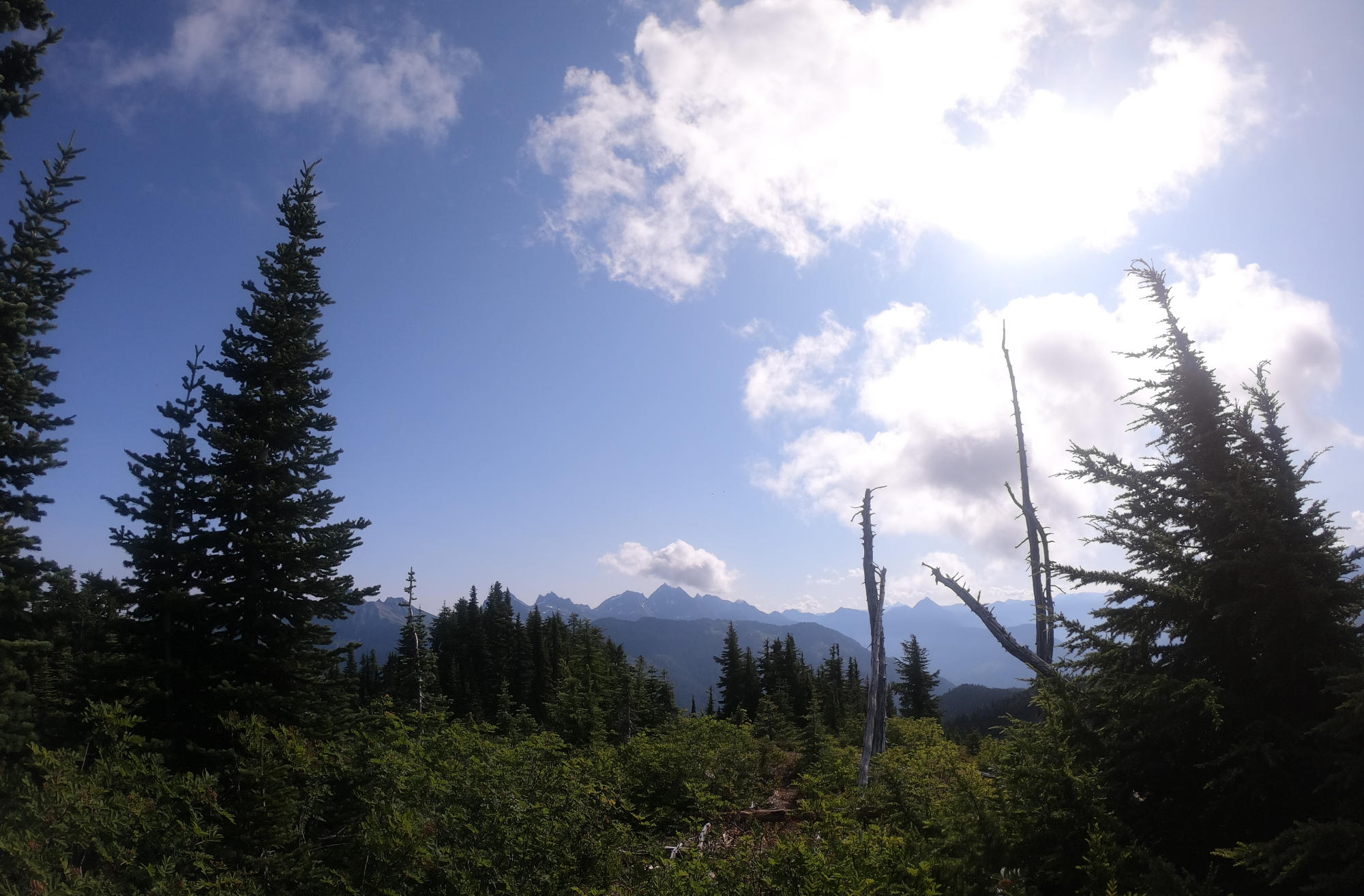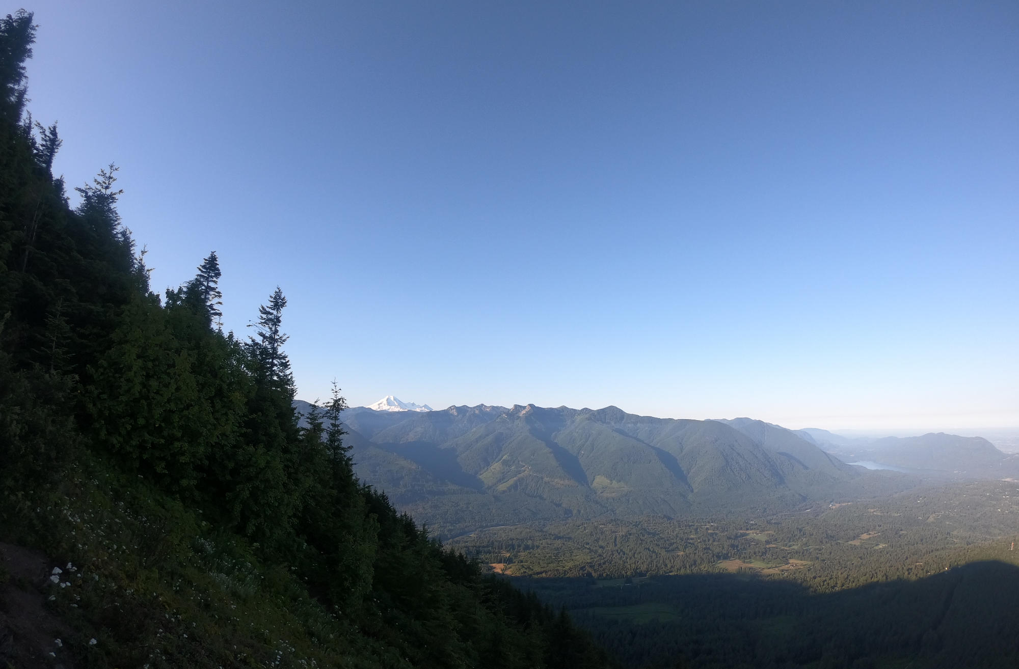 While there are a few minor lookouts on the way up, the real treat cam about 50 minutes in. That's about 4km and 800m of vertical gain. Here you get to see Mt Baker and some of the peaks to the south including Church and Liumchen.