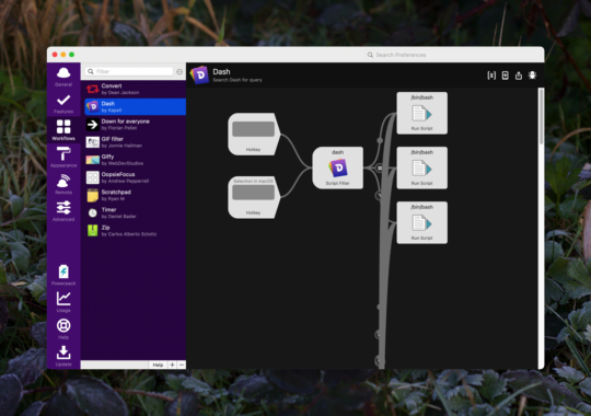 If that's not enough for you then Alfred has a whole custom workflow system you can use to build out hugely complex and powerful tools. I regularly use the Dash workflow to search Dash quickly. Another one I use often is a workflow that lets you check if a site is down just for you or if it's down across the web.