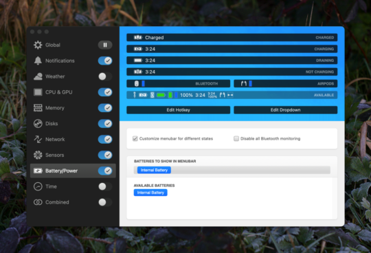 Another great feature iStat has is changing what it shows you for your battery depending on how you're using your Mac. When it's charged it can show you that it's plugged in and charged, but when you're on battery it can change to show you how long you've got left and remove the little plug icon.