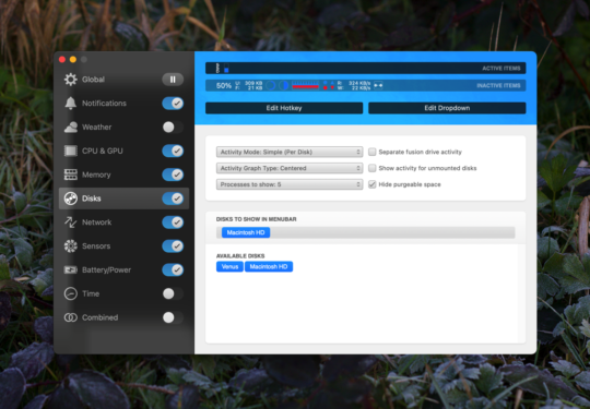 I already mentioned that I use DaisyDisk to comb through my hard drive to trim items that accumulate, but I only know when I need to do this because I can see how much space is free on my MacBook Air because iStat Menus provides an icon to show me.