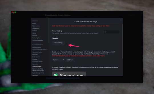 While this is not the fault of the developer of the Custom Frames plugin, it's disappointing that these frames won't work on your mobile device. The mobile versions of Obsidian do not run on Electron so they have no web view for your device to use to embed the iframe. It would be excellent to have a note open alongside my Todoist tasks on my mobile device, but for now, you're going to have to stick with any split-screen features that your device has.