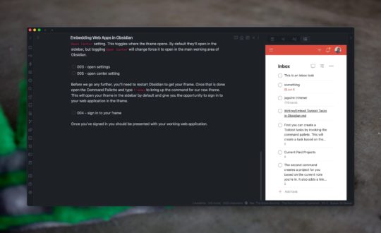 Last week we looked at how to get Todoist tasks into your Obsidian notes via the Obsidian x Todoist plugin. Today we're going to look at another way to bring your Todoist tasks to Obsidian via iframes and the Obsidian Custom Frames plugin.