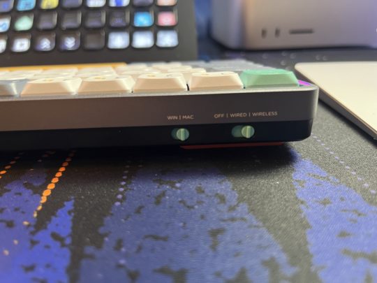 Out of the box, this keyboard has both macOS and Windows modes accessible via a switch on the back of the board. That's really all you can do to change the layout if you're in macOS land because the programming console is only available for Windows. This means I can't solve one of my issues with the placement of the backtick key by programming the board to have it more accessible.