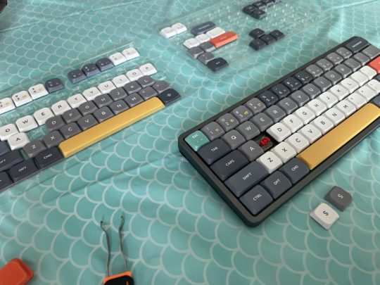 To keep this keyboard slim they have razor-thin keycaps that are double-shot PBT with dye sublimated legends. When I purchased this keyboard the Coast set was a $19 addon so I grabbed those as well. I usually like a darker set of keycaps because they don't look dirty as fast so I swapped them out to use as my full-time keycap set.