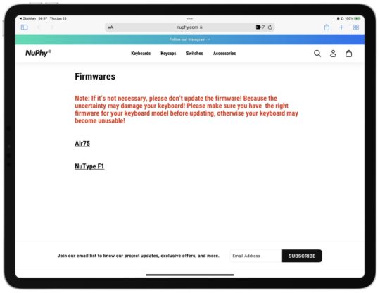 The other thing that gives me pause on the software front is that there is a firmware update for the Air75 keyboard and NuType F1 boards but they have a huge disclaimer NOT to update the firmware because things may break.
