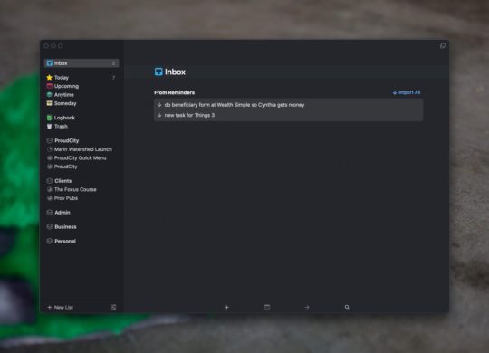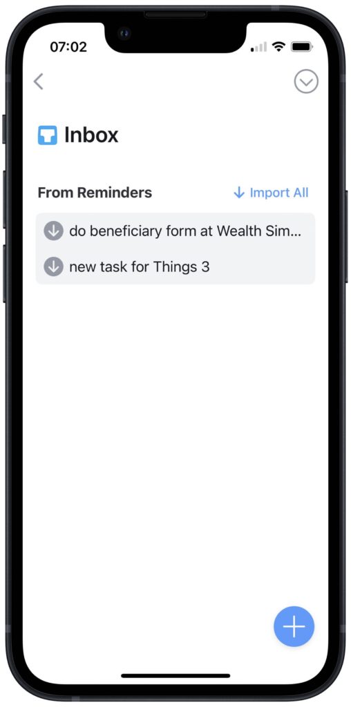 Click or touch Import All and your tasks will become Things 3 tasks. This deletes the task from Reminders at the same time as it brings the task into Things 3.