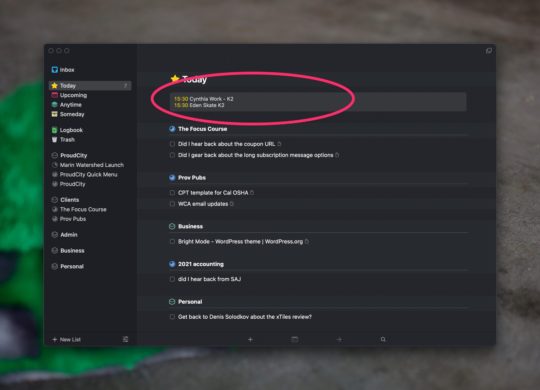 In a later video/post I'll show you how you can use the upcoming view with your calendar entries to plan your week of tasks.