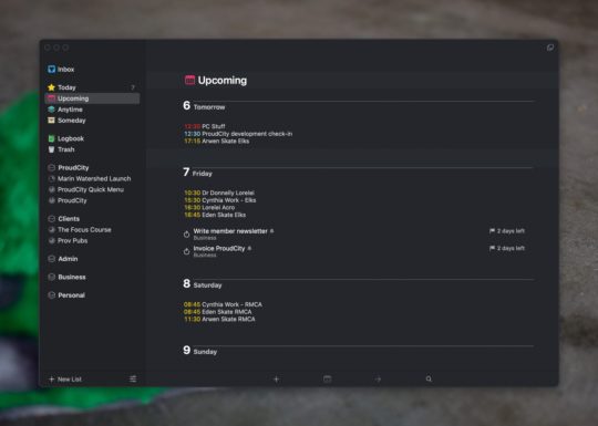 Things 3 Upcoming View