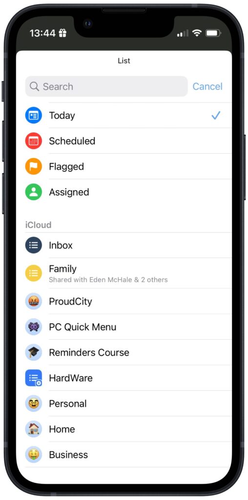 Now you can touch the list, and choose from any list or Smart List that has been synced to your device.