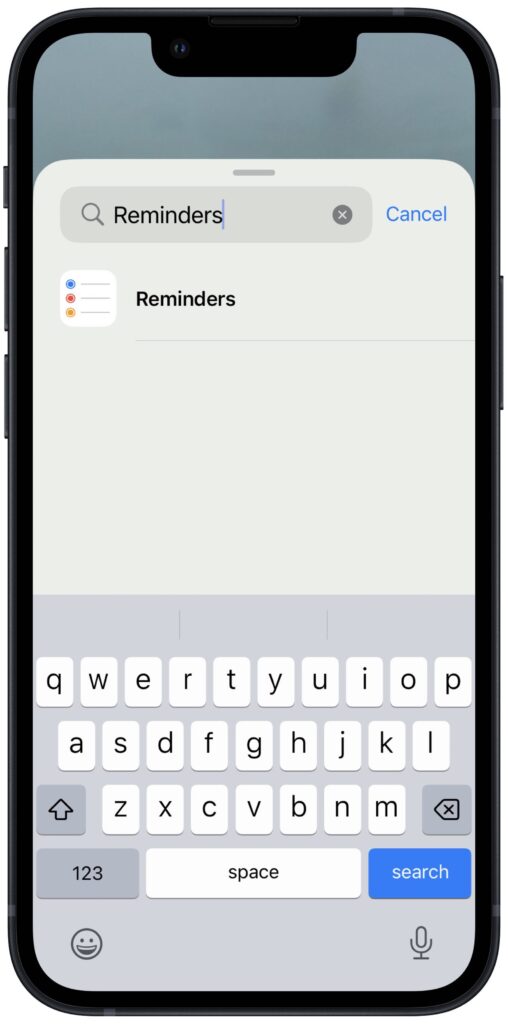 Next iOS will suggest some widgets you could add, but since we're talking about Reminders, type Reminders into the search field then selected the Reminders icon from the search results.