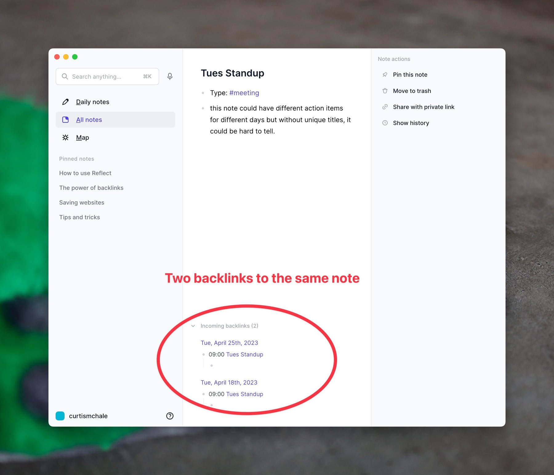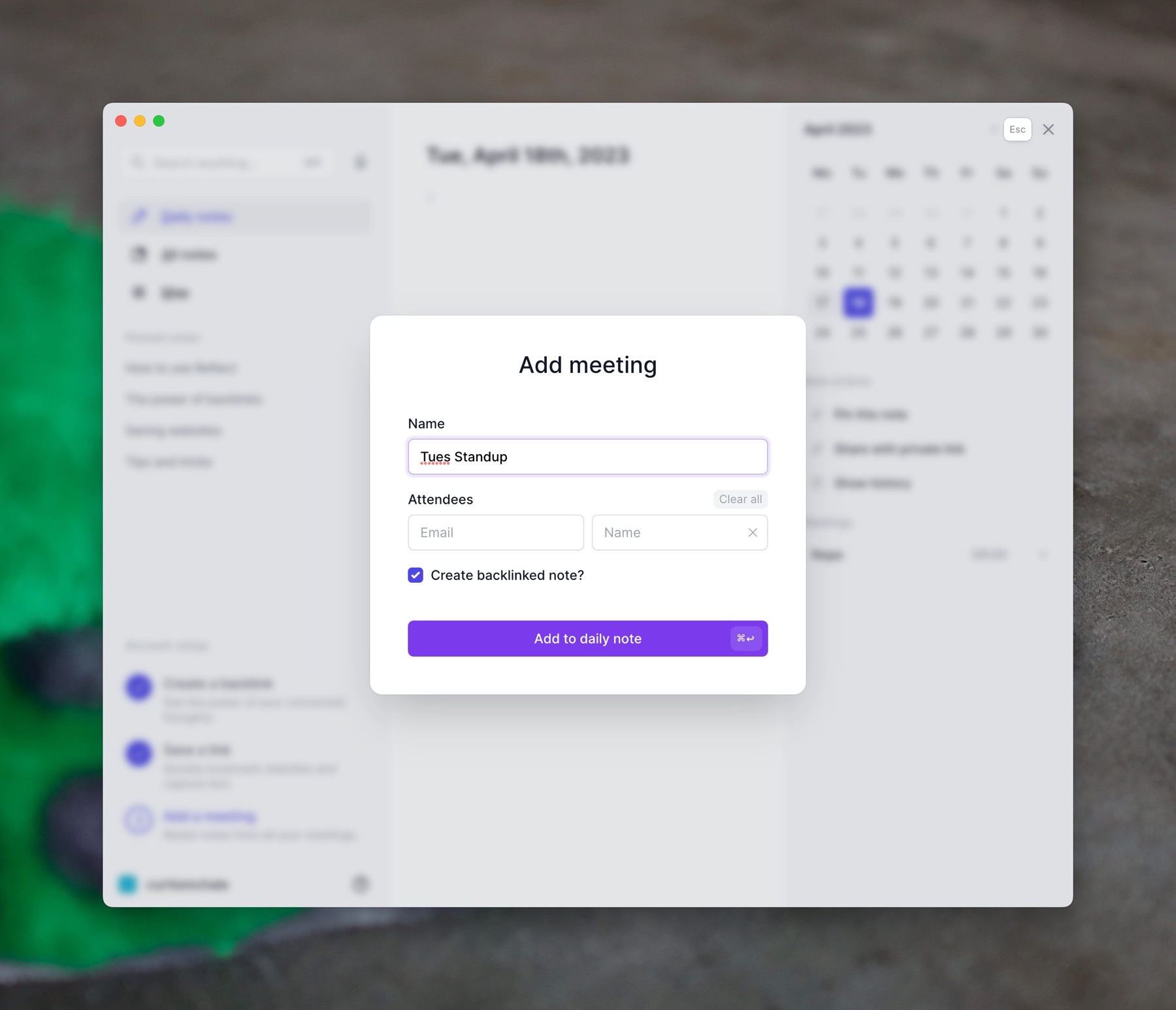 Meeting note metadata in Reflect