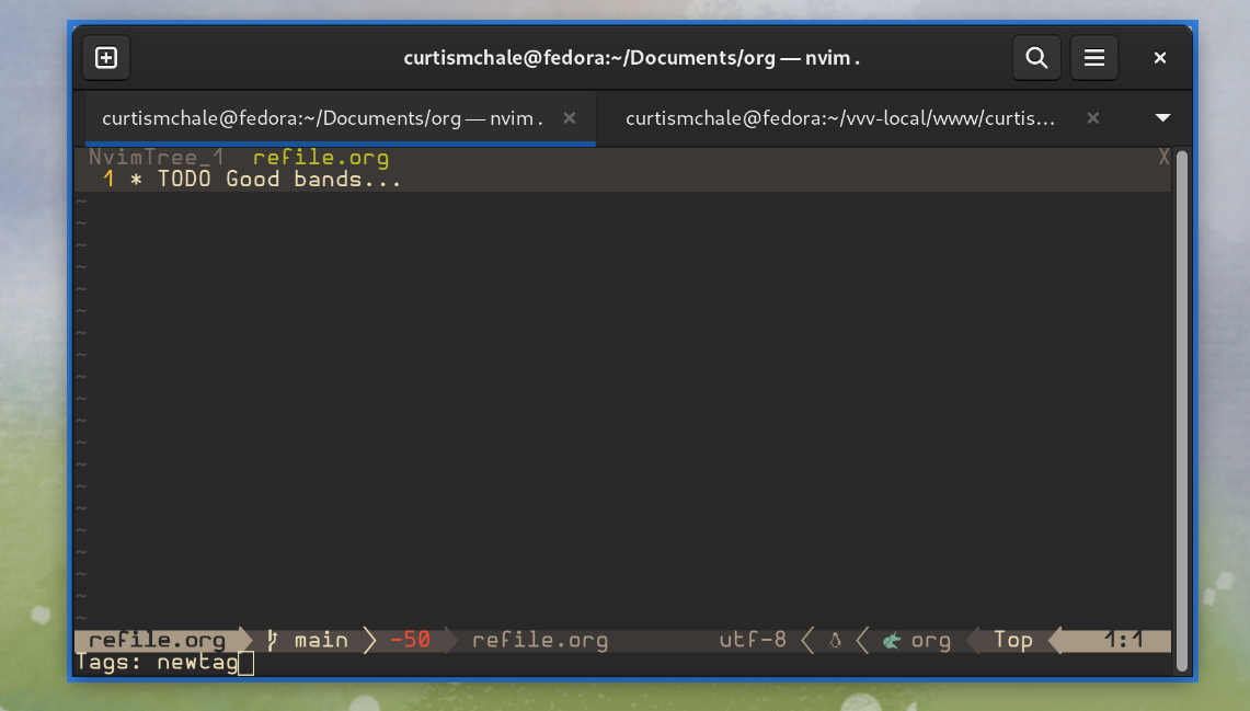 Working with nvim-orgmode Tags