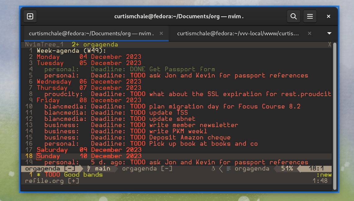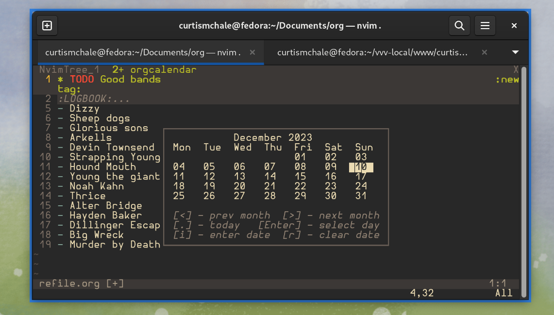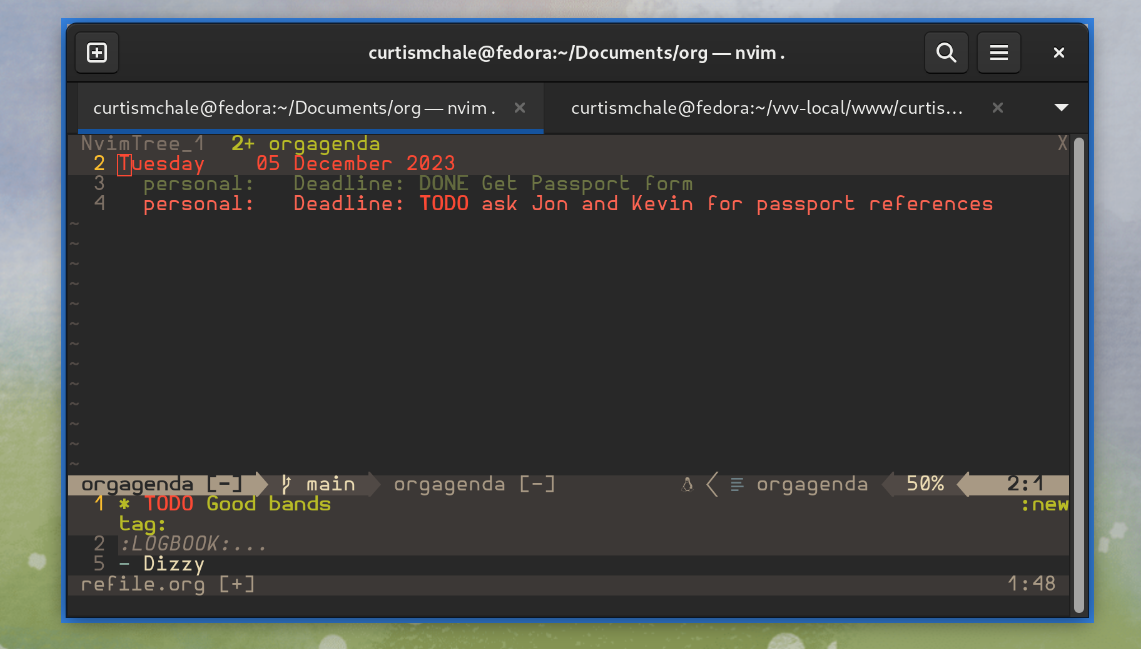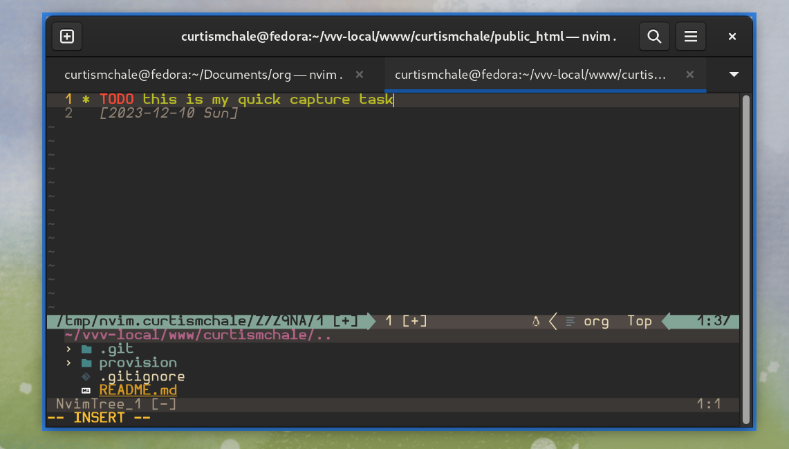 But Vim, really I use NeoVim, is all about keyboard control and OrgMode lets you manage tasks and Nvim OrgMode brings.org file support and syntax to